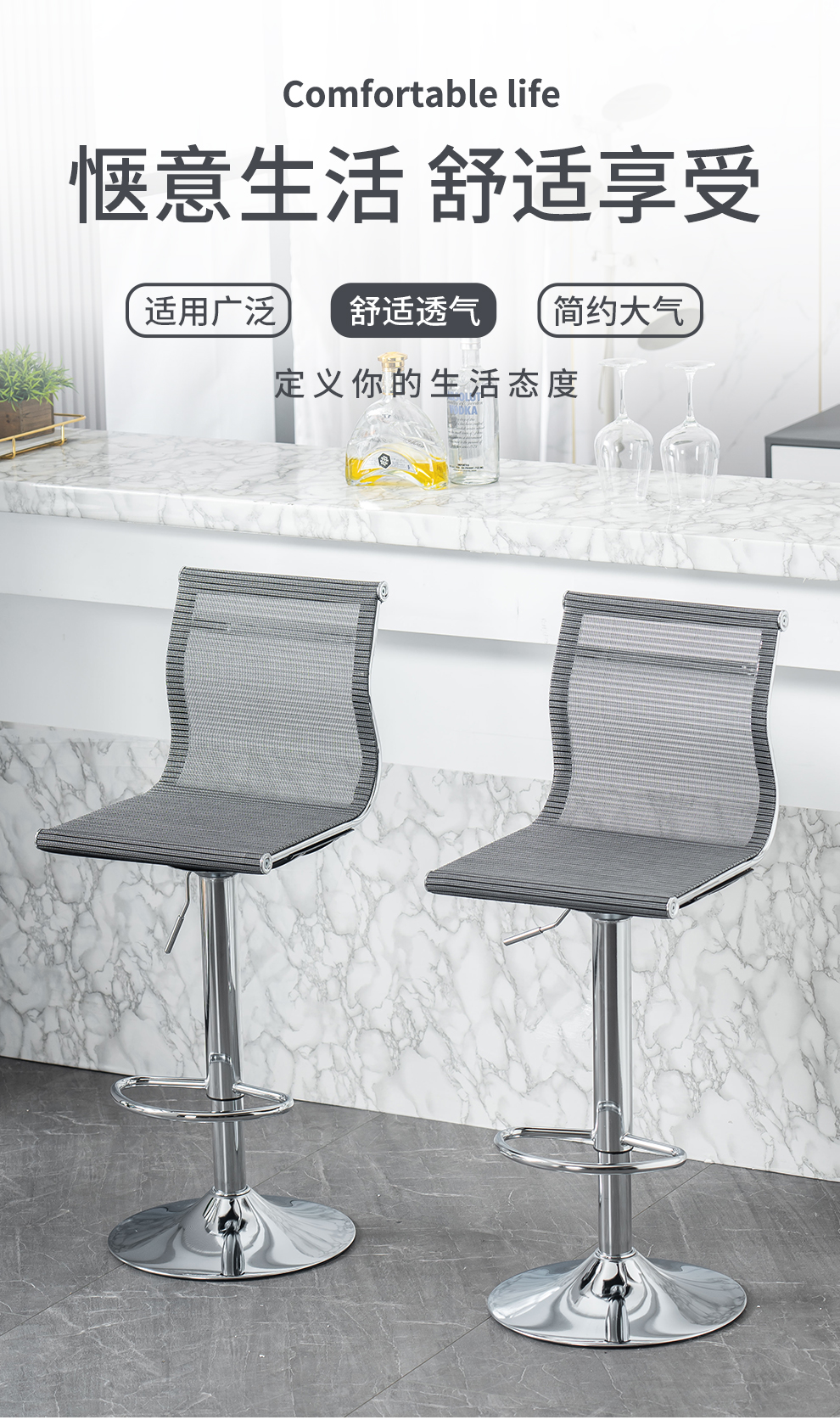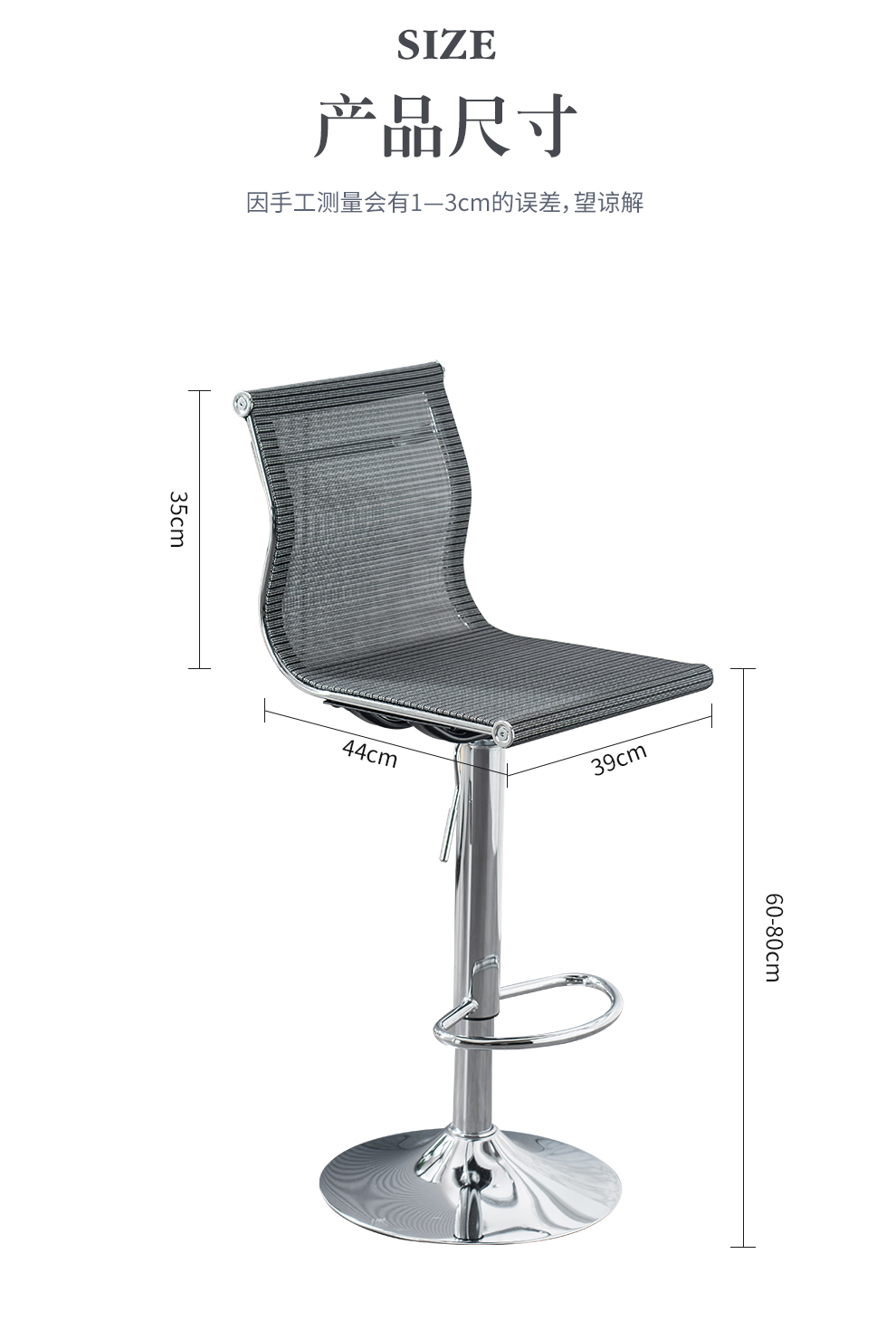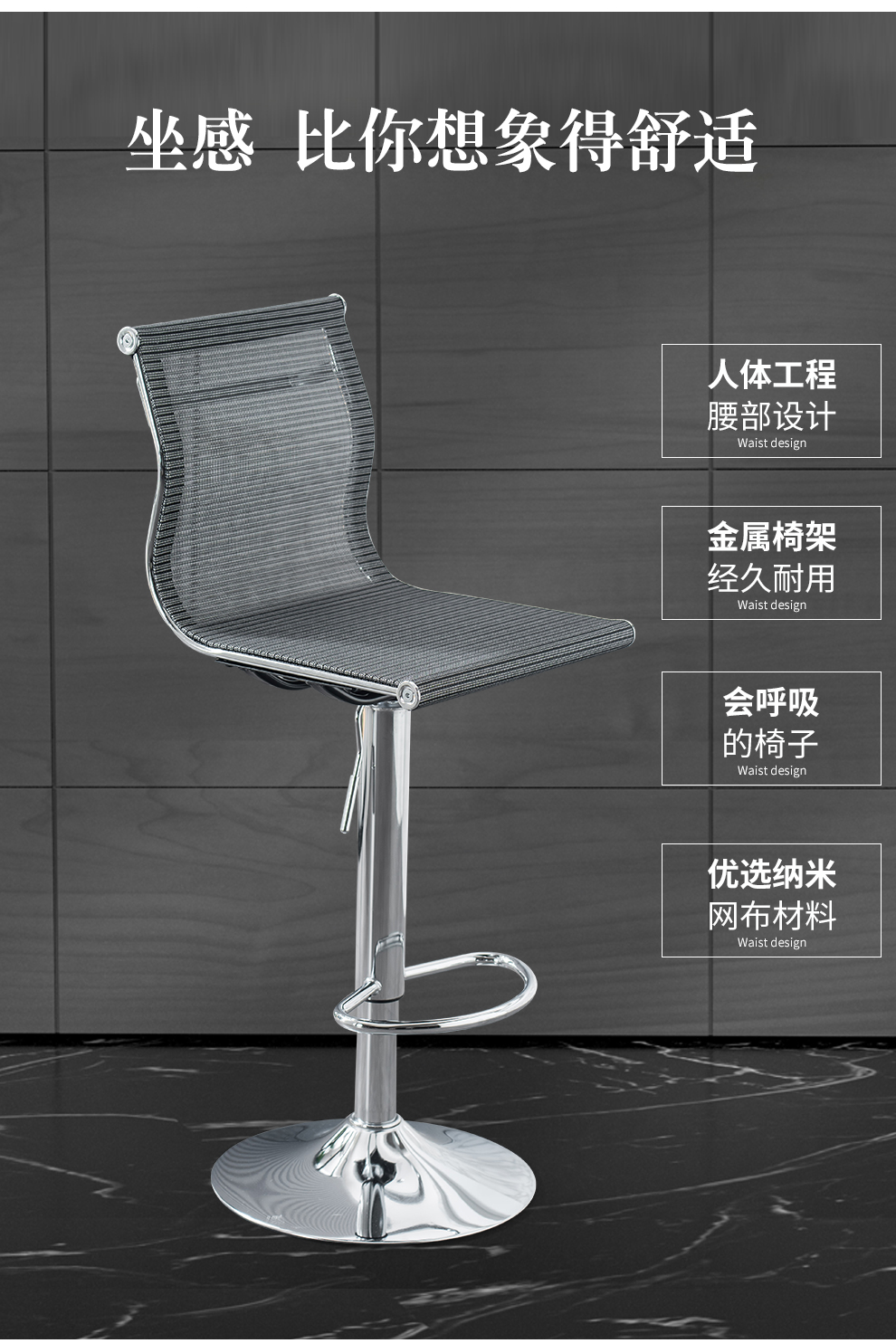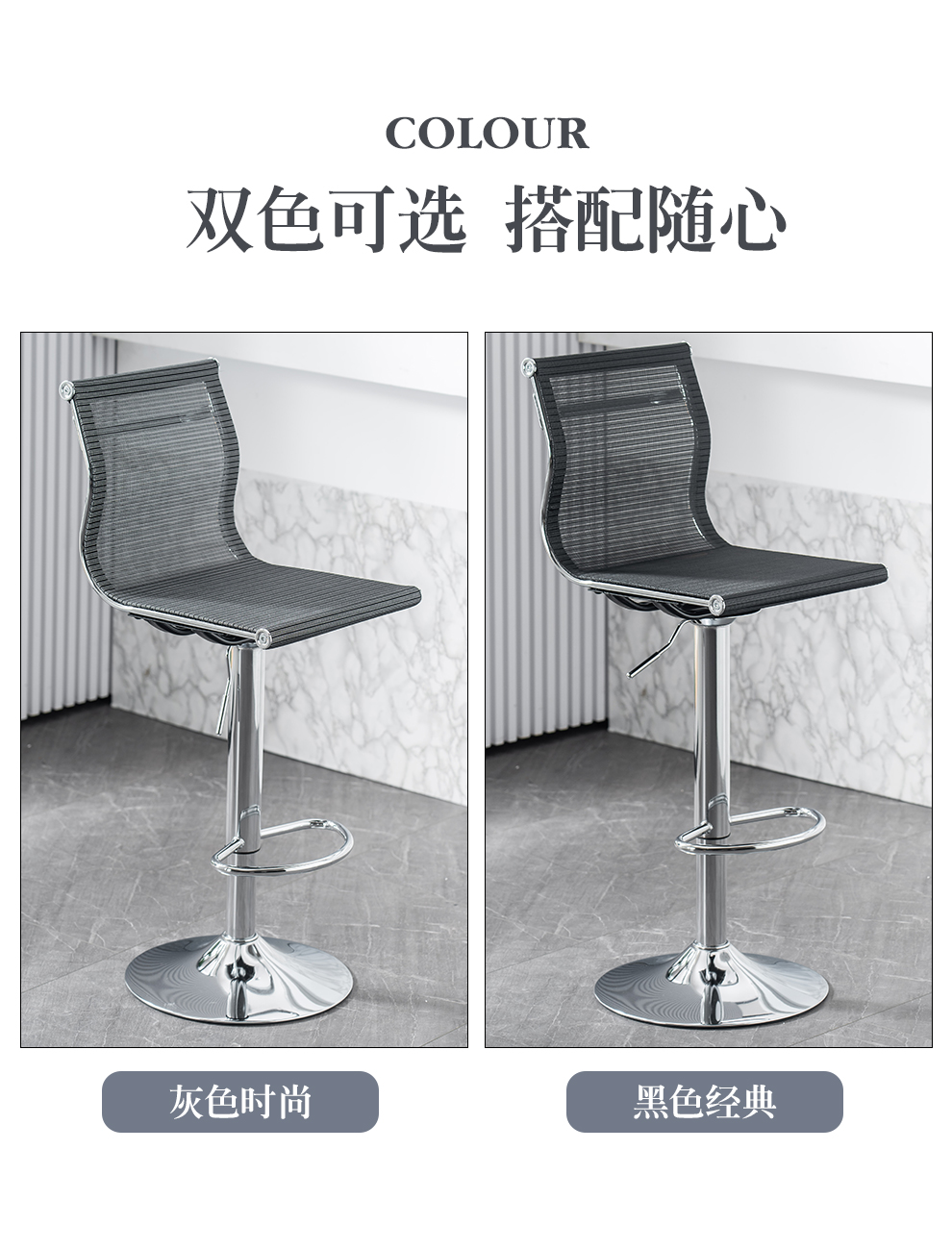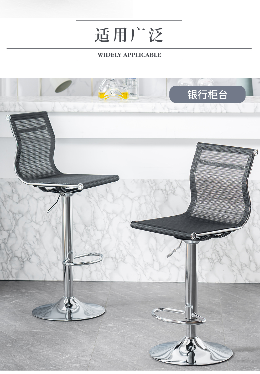 Original feeling bar chair, modern and simple lifting swivel chair, backrest, cash register front desk chair, office high chair, laboratory mobile phone store counter reception chair, mesh breathable bar chair, black classic (sitting height 60-80cm)