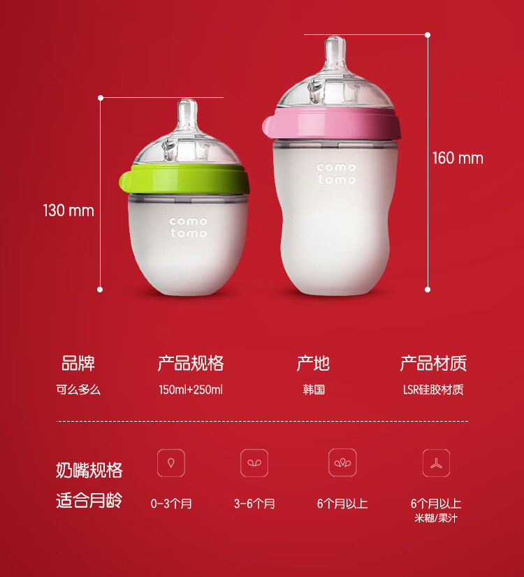Como Tomo bottles [pre-sale] Newborn baby bottles, weaning silicone bottles, drop resistant 0-2 years old, 11th anniversary gift box