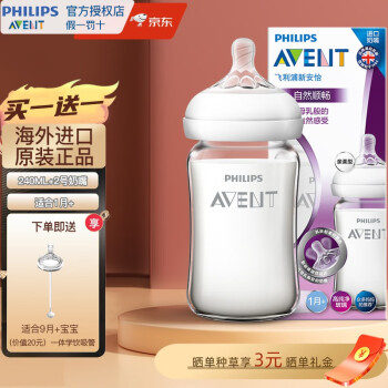 AVENT Philips imported glass milk bottles for newborns, anti bloating and anti drop imitation breast milk baby bottles, natural and smooth series [Exquisite gift box] 240ml smooth anti bloating [Image price brand quotation]-